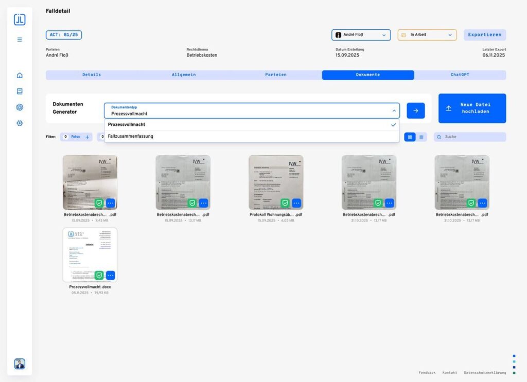 Infos, Akte, Export. KI-Hilfe in jedem Schritt. Startklar in 5 Minuten: