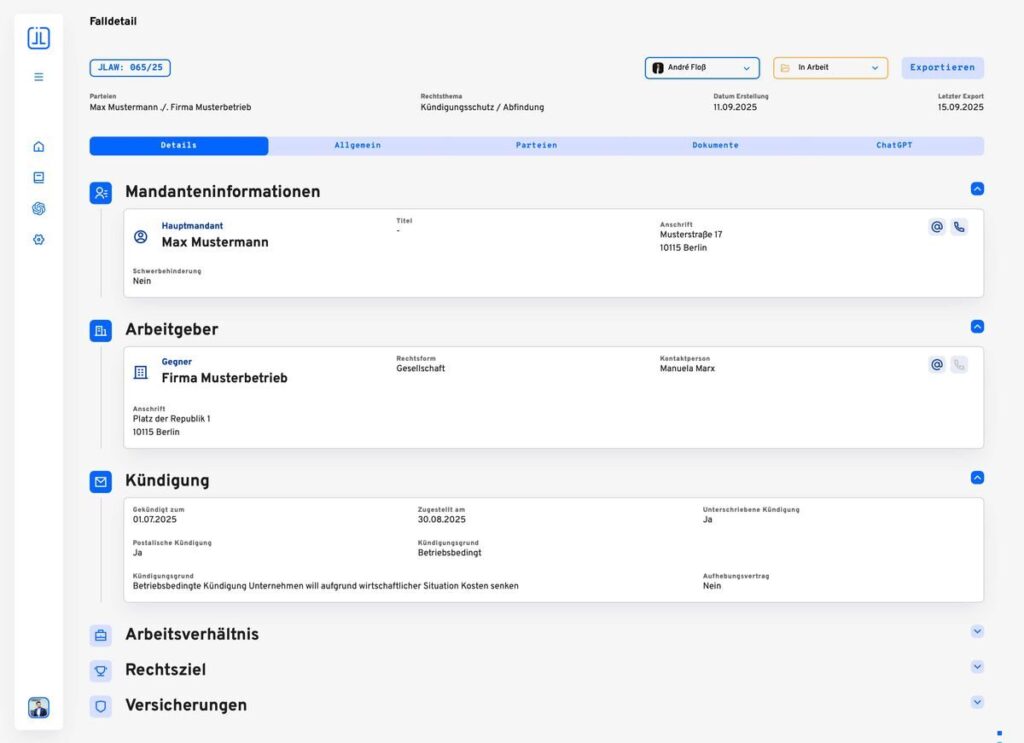 Automatisiert alle Mandatsinfos erhalten – angepasst an den Fall & durch KI zusammengefasst