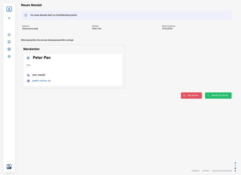 Mandanten gewinnen kann anstrengend und repetitiv sein, weil Sie oft die gleichen Infos nachfordern müssen. Justin Legal spart Ihnen diesen Aufwand: geführte Annahme neuer Mandate, jeweils maßgeschneidert auf den Fall.